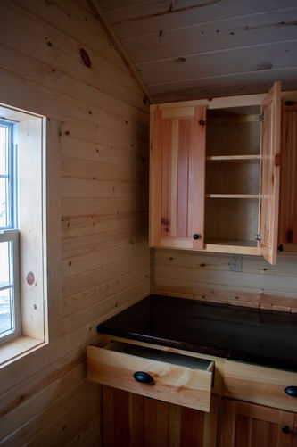 In addition to the Shell Package options listed above, Key Entry Package come with additional features such as electric, kitchen cupboards, bathroom fixtures and hot water heaters. The additional options included in the key entry package are as follows: Floor insulation available: closed cell spray foam recommended no less than 2" Wall insulation (optional): closed cell spray 2" (R14 value) of fiberglass (R13, R19, or R21 also available) Trim: 1x4 (Stain color options) Floor covering: vinyl floating flooring (color options) Bathroom/s: 36" walk in shower, toilet and pedestal sink Kitchen: 7' straight section of cabinets in natural, rustic or hickory stain, single bowl sink, counter tops of custom epoxy design (3 options) Electric: 100- or 200-amp service box, GFI outlets in kitchen and bathroom, outlets every 8-12 feet, 2 recessed lights in each bedroom, 6-10 recessed lights in kitchen/living area (depending on floor plan), bathroom exhaust fan, and 220 kitchen stove outlet. Plumbing: inlet water line, gray water, sewer is stubbed out on an outside wall for final connection (we do not make final connection), water lines are connected and pressurized before hook up Water heater: gas or electric on demand Heat/AC: mini split units (price not included in the square foot price list above)